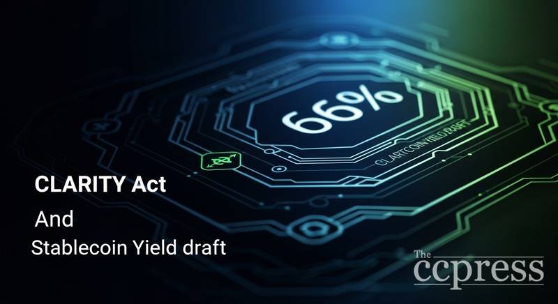 Polymarket traders priced the CLARITY Act at a 66% chance of becoming law in 2026 as crypto industry leaders and banking representatives separately reviewed draft text on Capitol Hill that would ban passive stablecoin yield while carving out room for activity-based rewards.