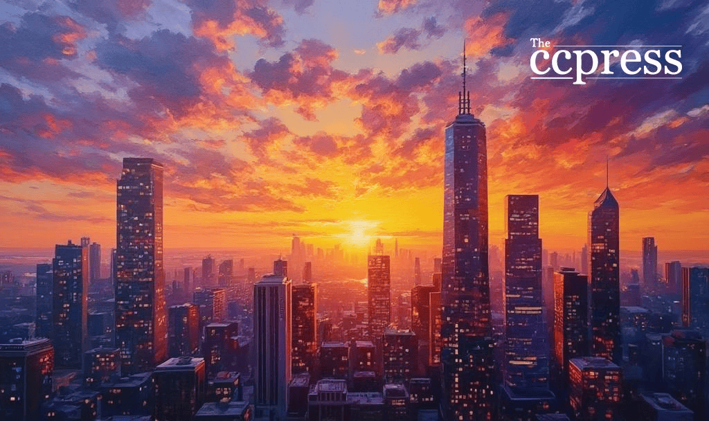 vibrant city skyline sunset