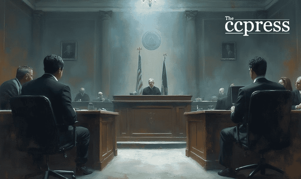 courtroom drama crypto painting