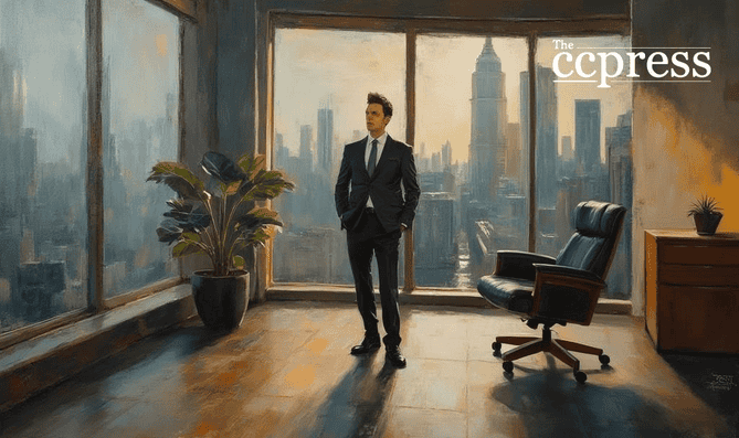 confident executive oil painting
