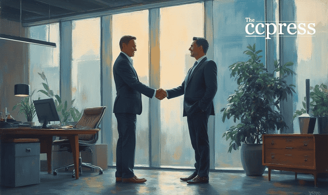 business handshake oil painting